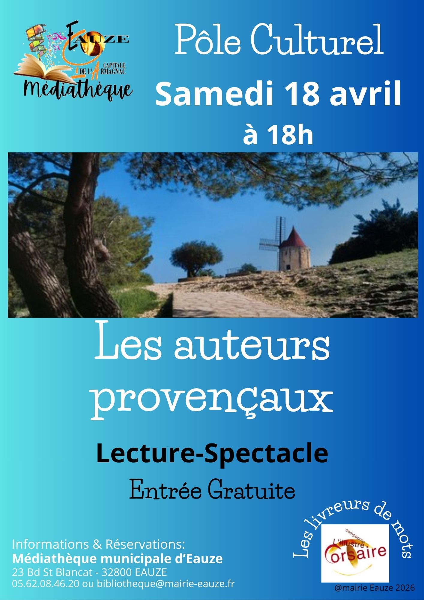 Médiathèque Municipale d'Eauze 05.62.08.46.20 ou culture@mairie-eauze.fr